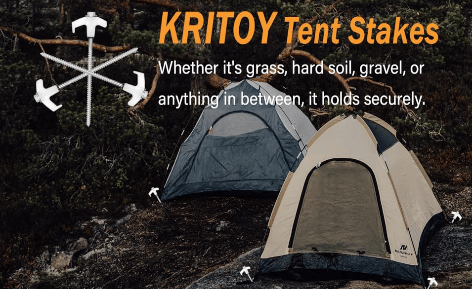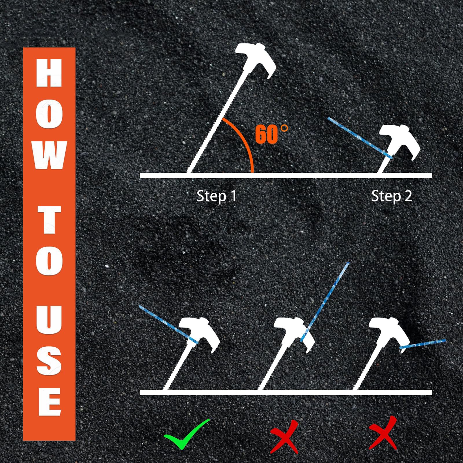 ⛺【EASY TO USE】Our Tent Stakes Setup faster so you can sit back with a beer while watching other campers struggle. With the help of a cordless drill or impact driver, these easy-to-use stakes will have your tents, canopy, gazebo, awning, guy lines or tarps secured to the ground in seconds.