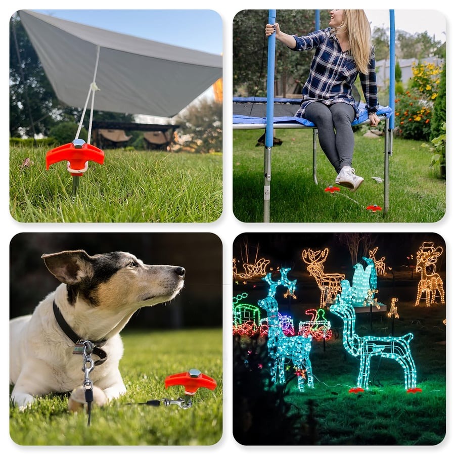 ⛺【MULTI-PURPOSE 】 Whether you're looking to secure your tent, awning, pop up, canopy, gazebo or even to secure your dog leash, Christmas decorations, new years decorations, Drillable Tent Stakes have you covered.
